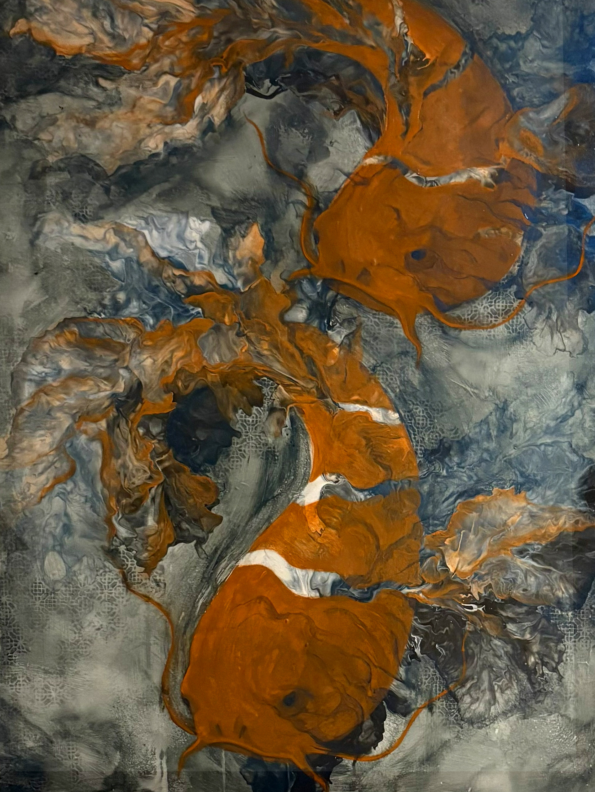 I didn’t start with a plan. I just poured paint and followed what felt right. At first, it was playful. Like how I saw the world as a kid, full of color and movement. But as the koi shape appeared, it started to feel more grounded. Like something about distance, steadiness, and staying connected. That wasn’t what I set out to paint. But it’s what came through.