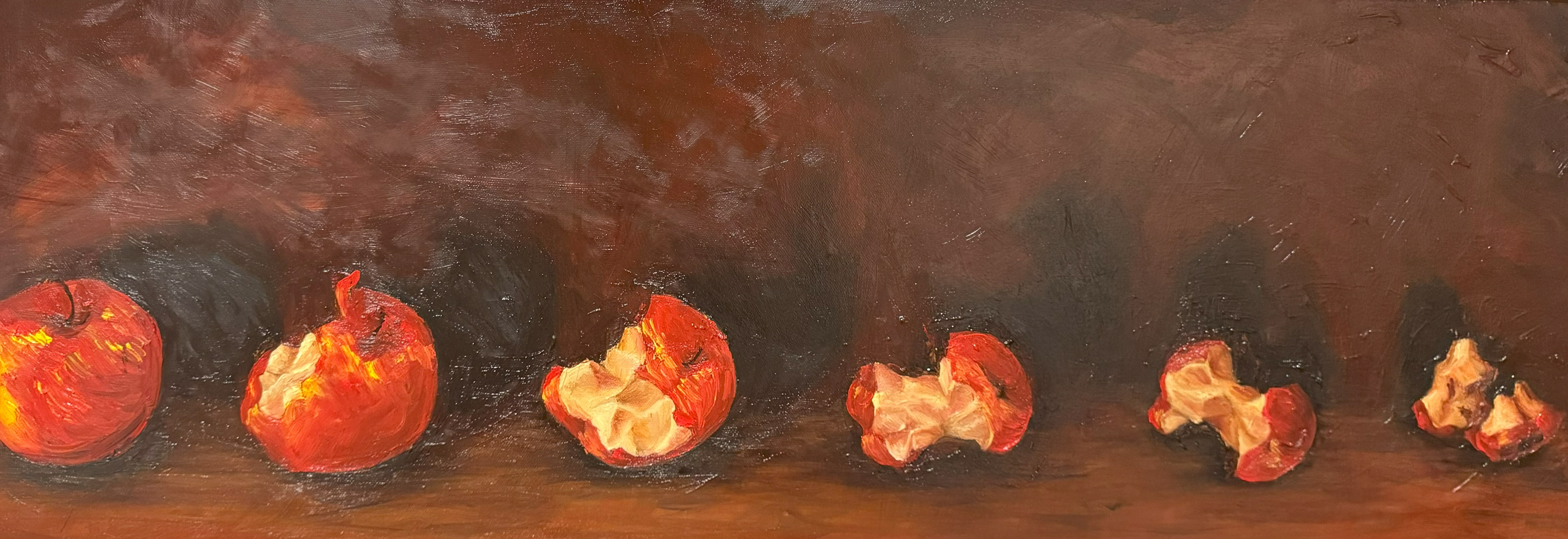 Painted as a technical study in traditional oil layering, this piece explores repetition and consumption. It captures the same object over time as a way of noticing change.