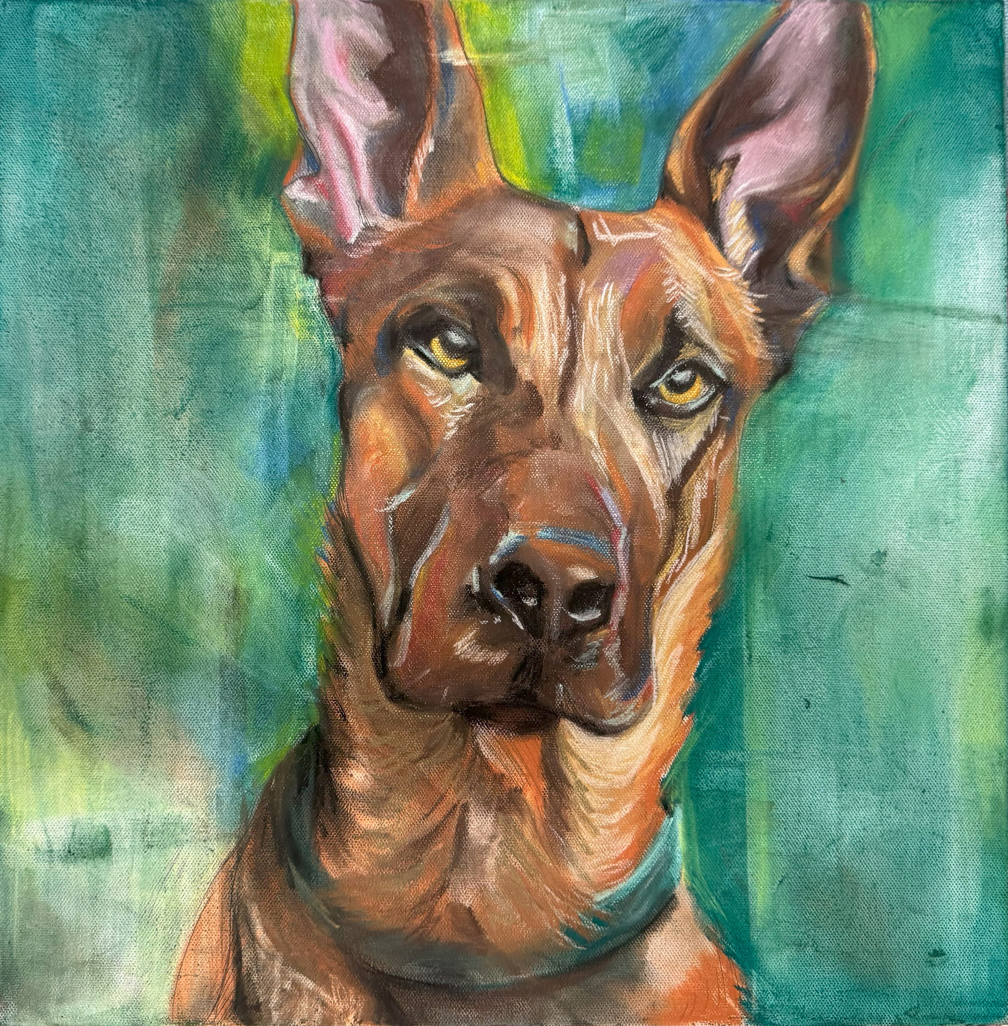 A commissioned piece focused on capturing the dog’s emotional presence through layered gesture and mark-making.